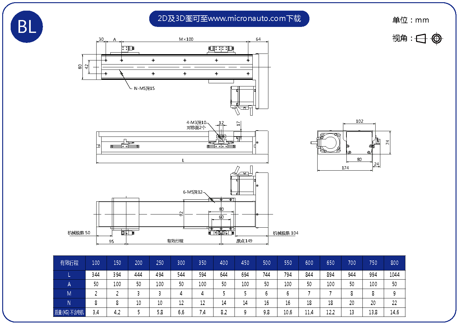 標(biāo)準(zhǔn)有效行程: 100~800mm(間隔50mm)