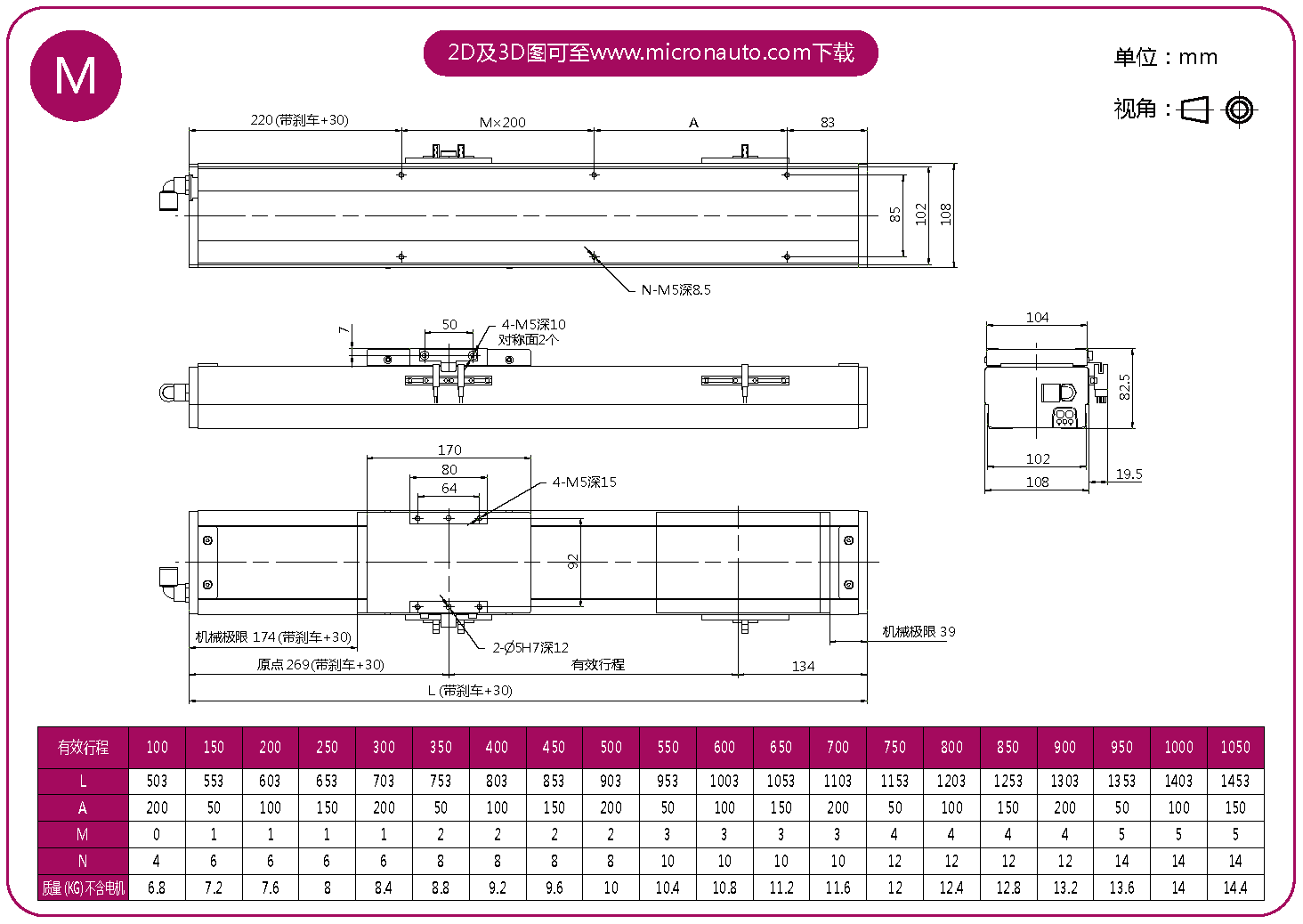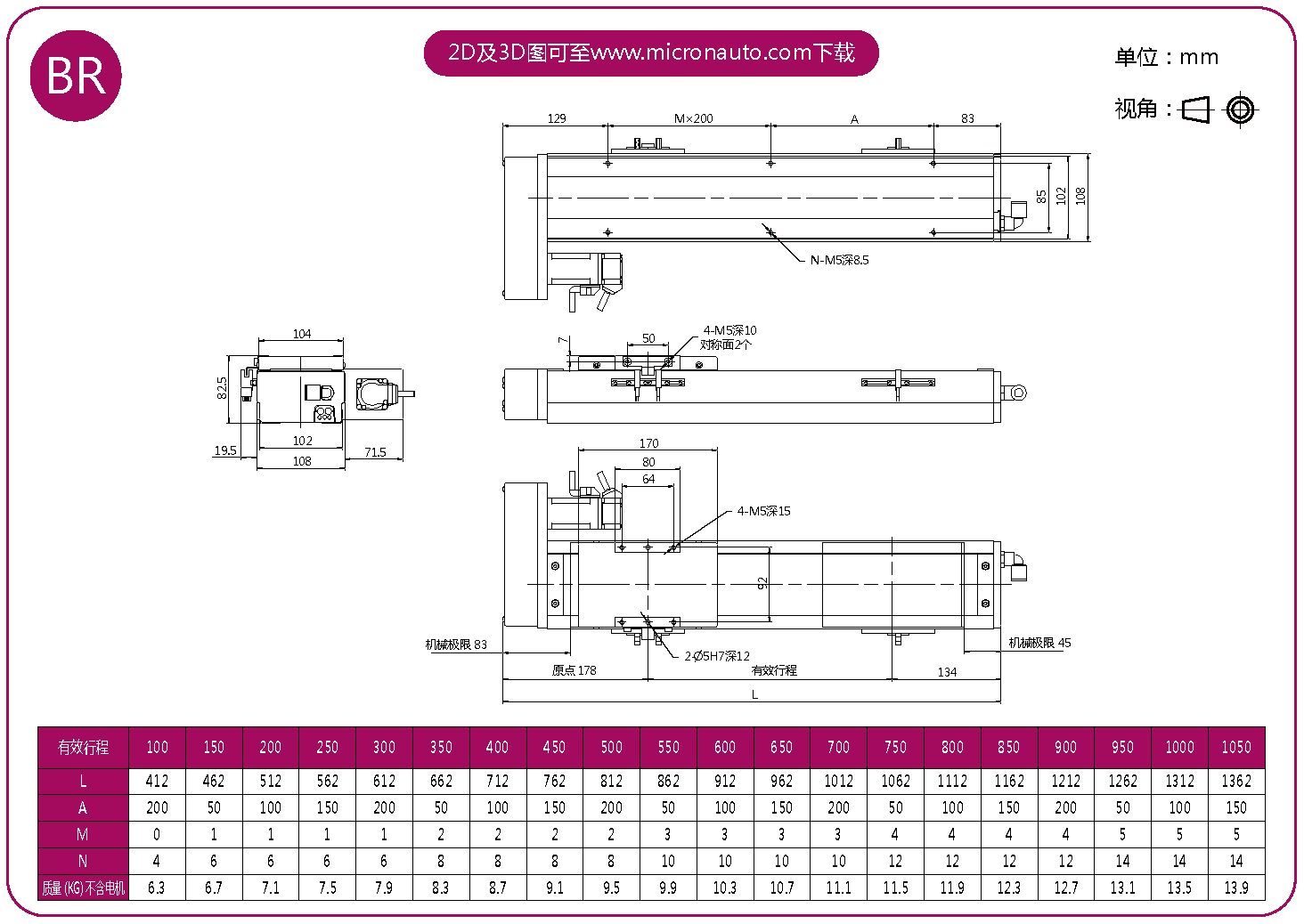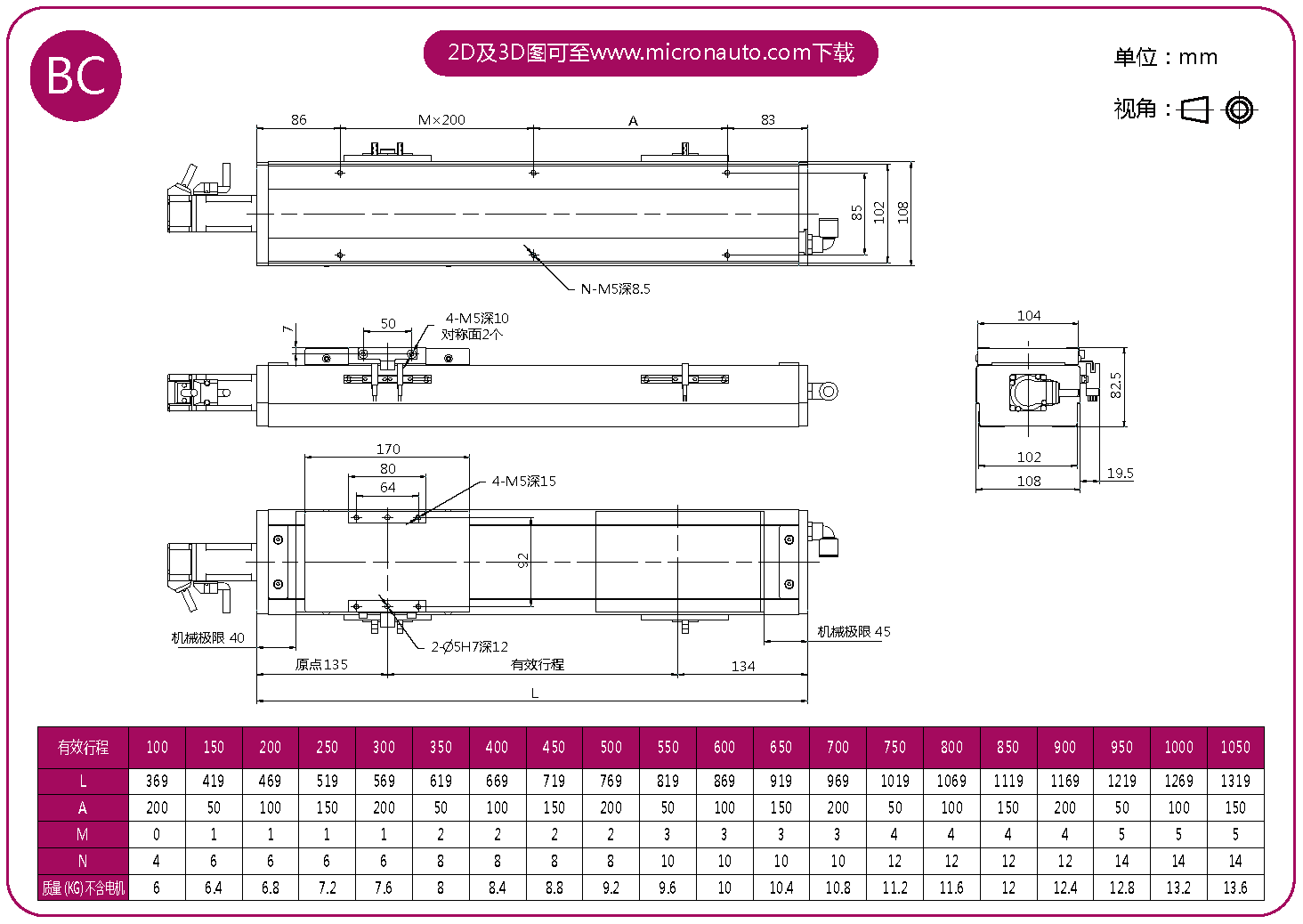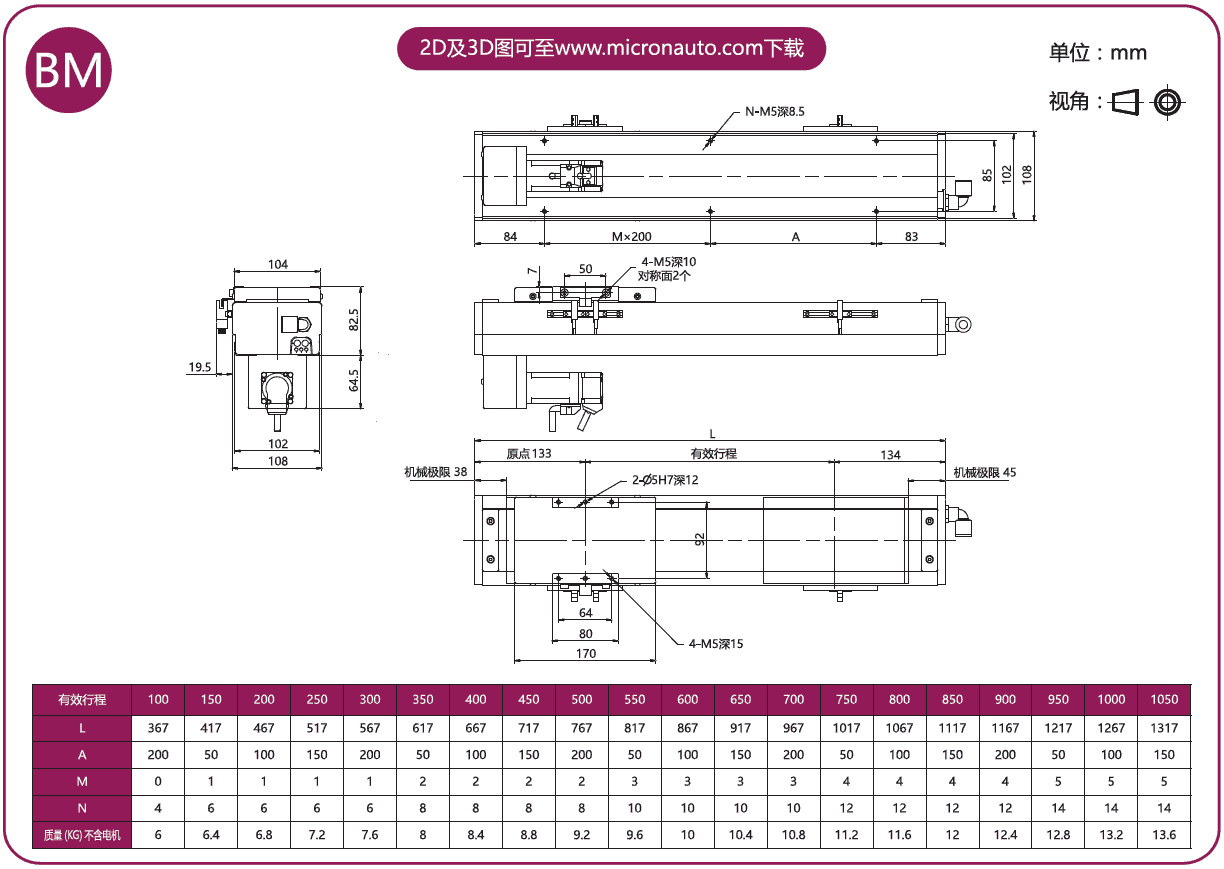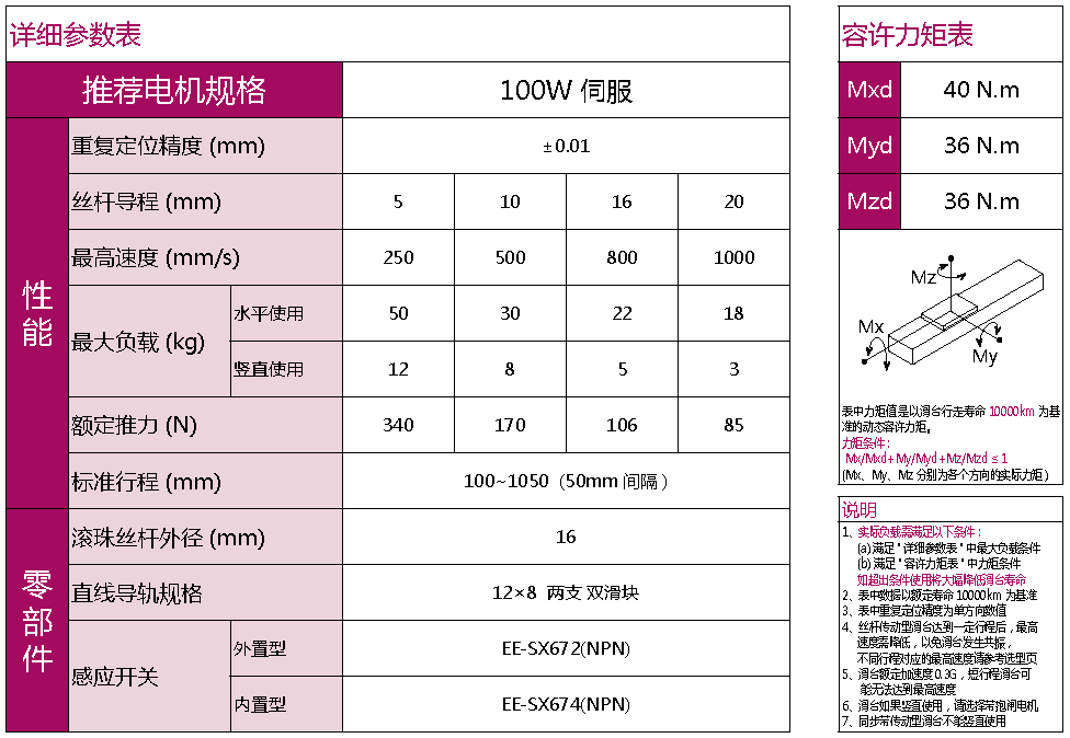 標(biāo)準(zhǔn)有效行程: 100~1050mm(間隔50mm)
