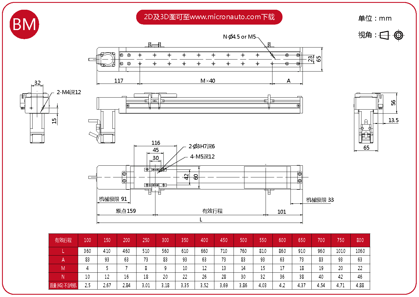 標(biāo)準(zhǔn)有效行程: 100~800mm(間隔50mm)